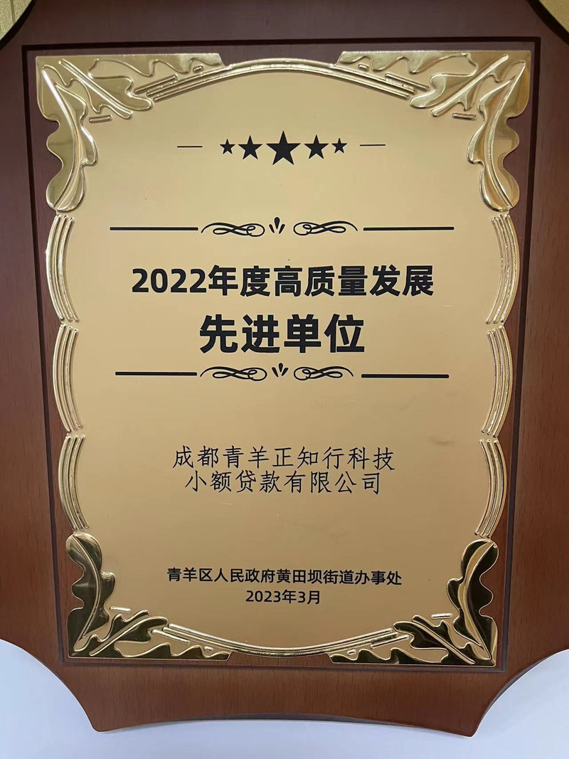 2023年3月23日,成都市青羊区委、区政府在航空新城黄田坝举办2023“人文青羊,航空新城”政企交流会,会上对青羊区优秀的企业进行了表彰,正知行科贷荣获“2022年度高质量发展先进单位”称号,同时被表彰企业还有成都飞机设计研究所、中国葛洲坝集团机电建设有限公司、中国铁建电气化局集团等十家央企、国企。作为青羊区唯一一家入选的民营科贷公司,此次获评一方面体现了政府对公司成绩和地方贡献的高度认可,另一方面也体现了在中央在提出“两个毫不动摇”后,地方政府对民企的鼓励和支持。