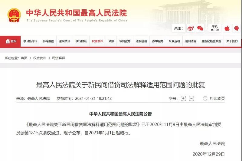 你院《关于新民 间借贷司法解释有关法律适用问题的请示》(粤高法〔2020〕108 号)收悉。经研究,批复如下∶