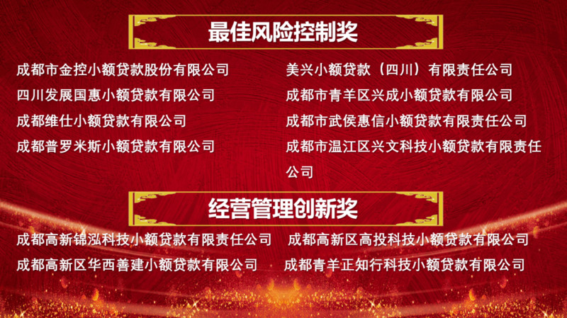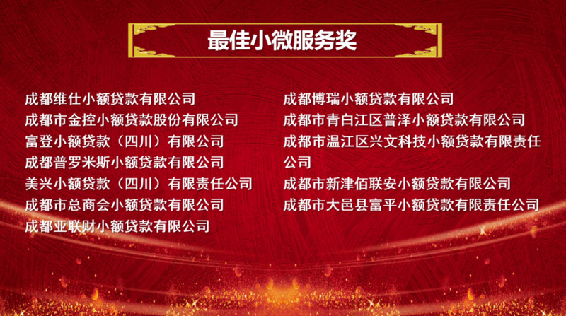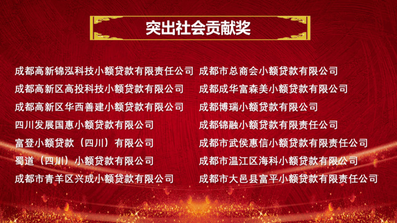 今年,协会本着公平、公正、公开的评选原则,经过单位自主申报,评审小组资格审查、民主投票表决并征求相关部门意见,对2021年度小贷行业发展中表现突出且具有行业带动和示范作用的公司给予表彰鼓励。此次获评最佳小微服务奖12家单位,最佳风险控制奖8家单位,经营管理创新奖4家单位,突出社会贡献奖14家单位。