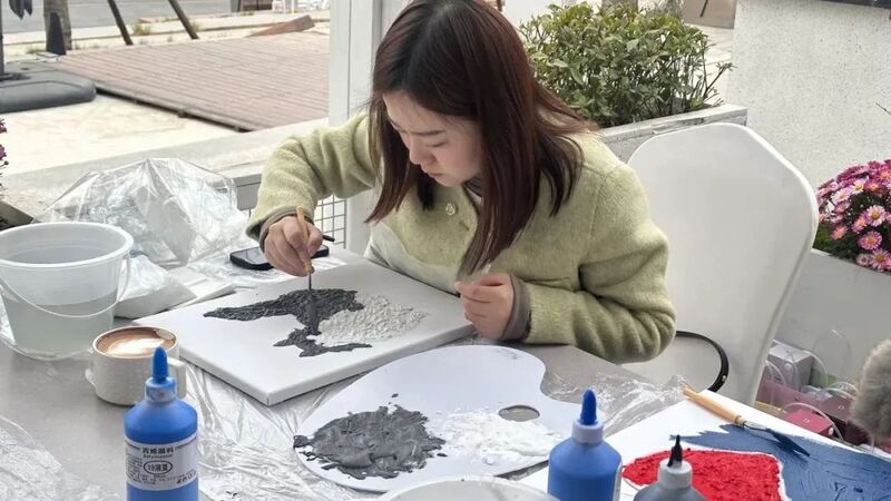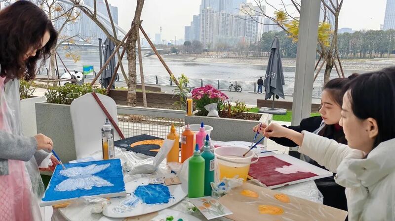 活动现场,大家认真聆听专业老师关于肌理画构图、绘画及上色技巧的讲解,精心挑选参考图片。绘画“零基础”女职工从一开始的小心翼翼落笔描边,逐步发展到自信提笔勾线、调色、上色。在一笔一画的勾勒中,一点一滴的着色中,大家把专注和热情融入各自喜欢的色彩,把对自己的赞赏和对美好生活的期许留在画布。现场氛围轻松愉悦,和谐舒畅,一幅幅精美画作更是十分赏心悦目。