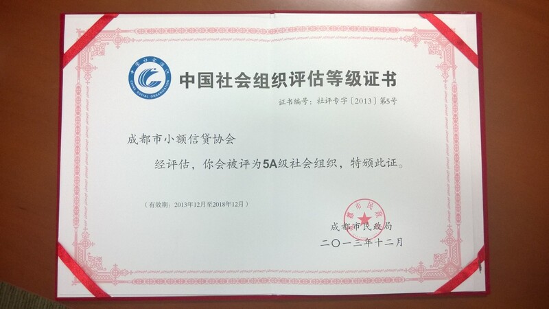 其中,成都市5A等级的社会组织共21家、4A等级的社会组织共30家、3A等级的社会组织共28家、2A等级的社会组织共8家,、1A等级的社会组织共5家及不予评级的社会组织共8家。成都市小额信贷协会经过前期精心的准备工作,认真履行《成都市社会组织评估管理办法》的相关规定,经过评估小组现场评估最终荣获5A等级社会组织称号。
