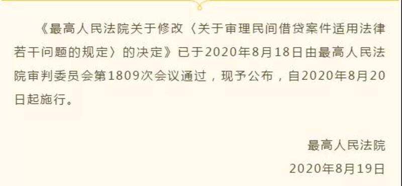 据贺小荣介绍,根据2020年8月18日最高人民法院审判委员会第1809次会议通过的《关于修改<关于审理民间借贷案件适用法律若干问题的规定>的决定》,今天,最高人民法院正式发布新修订的《规定》。