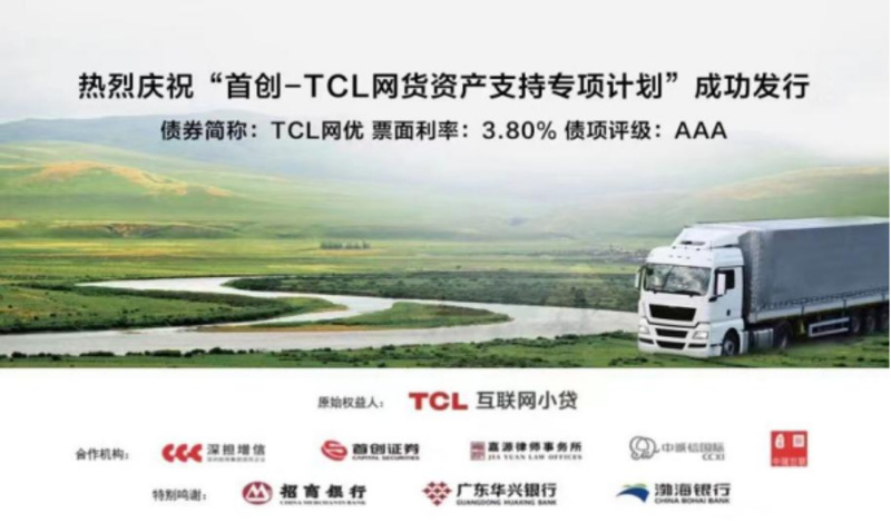 近日,由广州TCL互联网小额贷款有限公司作为原始权益人的“首创-TCL网贷资产支持专项计划”在上海证券交易所成功发行,首期募集资金1.8亿元,专项支持小微企业发展,广州TCL互联网小额贷款有限公司此次发行的资产证券化产品(ABS)是我市小贷行业首只资产证券化产品。
