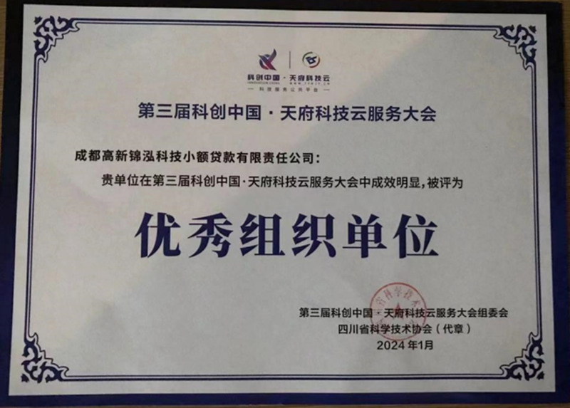 锦泓科贷于2024年1月18日-19日受邀参加第三届科创中国·天府科技云服务大会,会议在成都天府国际会议中心召开并取得圆满成功,锦泓科贷荣获“优秀组织奖”。