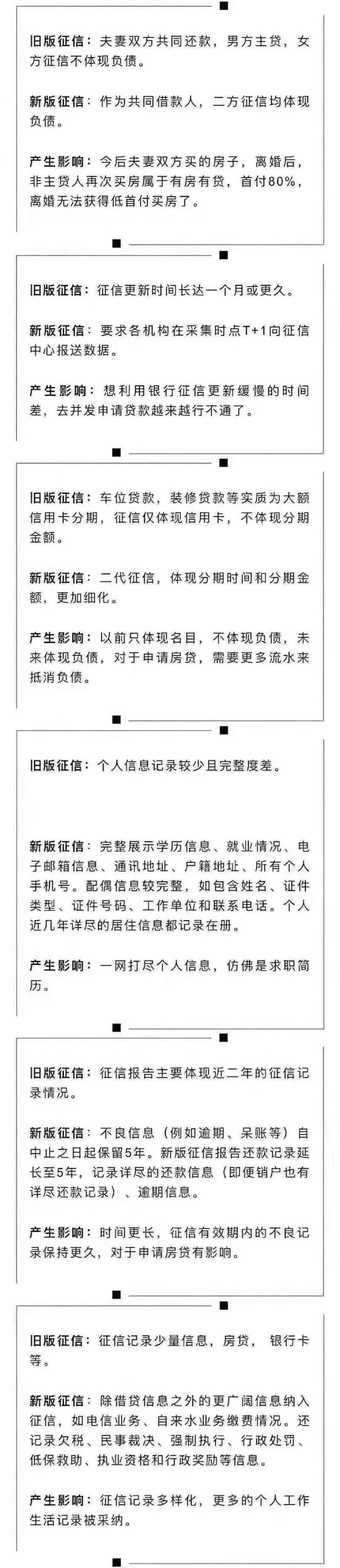 在信息更新方面,新版征信也更加严格。以往,旧版征信更新时间长达一个月或更久,新版征信中,则要求各机构在采集时点T+1向征信中心报送数据。“想利用银行征信更新缓慢的时间差,同时去多家银行申请贷款也行不通了。”一位业内人士表示。