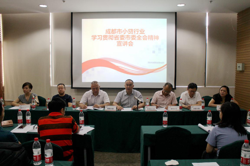 2018年8月9日下午,市小额信贷协会在市商会大厦召开学习贯彻中共四川省委十一届三次全会和中共成都市委十三届三次全会精神宣讲会。