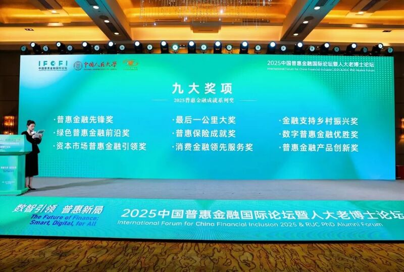 9月24日-25日,由中国人民大学、中国普惠金融研究院等联合举办的“2025中国普惠金融国际论坛(IFCFI)”在北京举行。论坛期间,“2025普惠金融成就系列奖”评选结果隆重揭晓,金控小贷公司凭借在普惠金融领域的突出实践,经70余位专业评审专家的严格考量,从全国百余家参评金融机构中脱颖而出,与平安产险、湖州银行、上海农商行同获“最后一公里”大奖,是本次所有获奖机构里唯一的小额贷款公司。