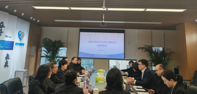 会上,金控小贷公司对宏泰小贷一行的到访表示热烈欢迎,并就公司主营业务开展、数字化建设成果等方面做了详细的介绍。随后,与会双方围绕公司产品创新、业务拓展、风险管控、金融科技探索和实践等方面展开了讨论与交流。