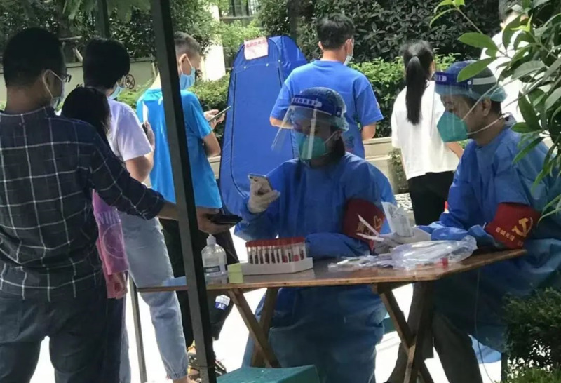(兴成小贷党支部书记下沉社区,参与核酸检验秩序维护)