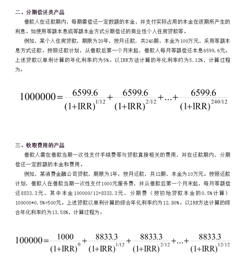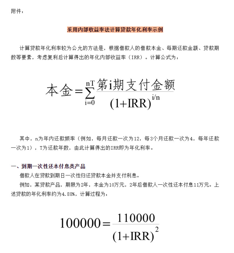 四、贷款年化利率可采用复利或单利方法计算。复利计算方法即内部收益率法,具体示例见附件。采用单利计算方法的,应说明是单利。
