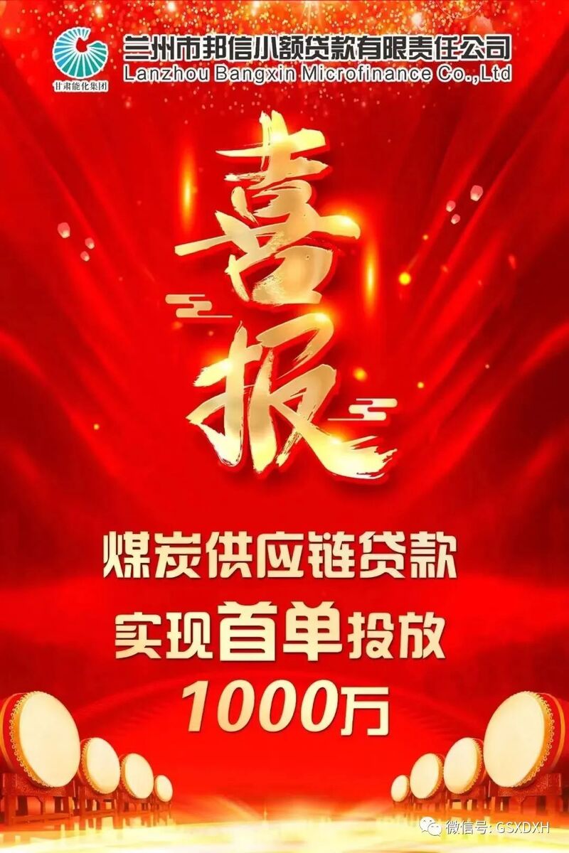 2023年3月31日,兰州市邦信小额贷款有限责任公司成功为煤炭客户发放供应链贷款1000万元,拉开了公司由传统信贷业务向供应链金融服务模式转变的新篇章。