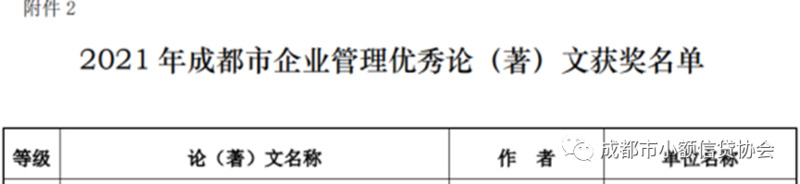 ■兴成小贷荣获2021年度成都市企业管理现代化创新成果优秀论文三等奖