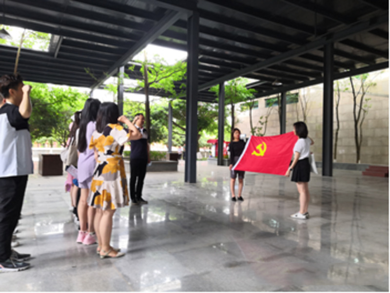 参观开始前,全体党员在党旗下再次庄严宣誓,“我志愿加入中国共产党……随时准备为党和人民牺牲一切,永不叛党。”通过重温入党誓词,进一步增强了党支部的凝聚力和战斗力,激发了全体党员的荣誉感、责任感和使命感,坚定了立足岗位、敢于担当、无私奉献的信心与决心。