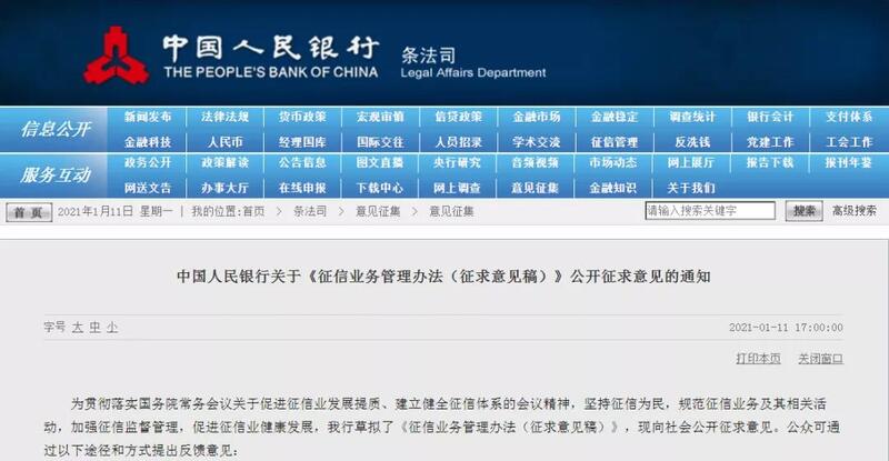 为提高征信业务活动的透明度,保护信息主体合法权益,推动信用信息在信息提供者、征信机构和信息使用者之间依法合规使用,央行依据《征信业管理条例》并结合征信业务发展的实际,草拟《征信业务管理办法(征求意见稿)》,并于1月11日向社会公开征求意见。