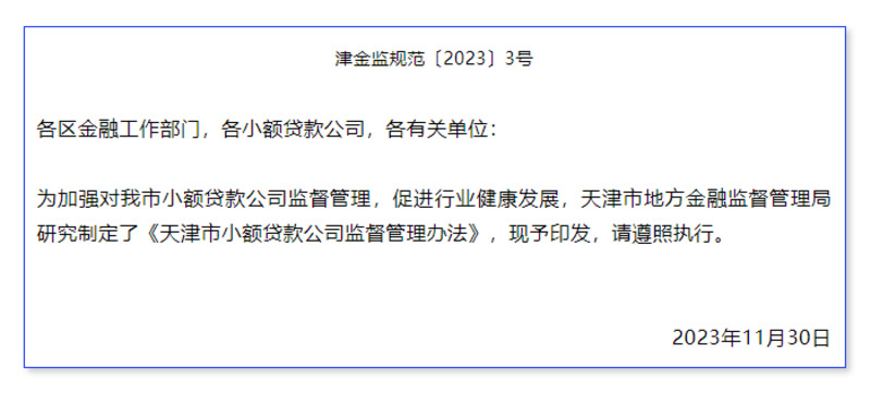 天津市小额贷款公司监督管理办法