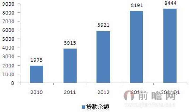 图表:2010-2014年Q1小额贷款公司贷款余额增长情况(单位:亿元)