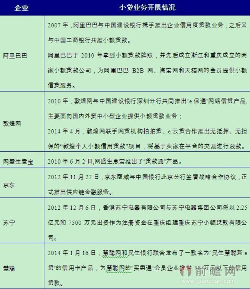 从目前各电商的发展模式来看,阿里与苏宁各自都已获得了小额贷款的牌照,都是以设置独立的小额贷款子公司的形式直接放贷;而敦煌网、京东、慧聪等并未取得小额贷款牌照,主要是通过与银行合作来提供金融服务,电商将企业运营的平台数据转化为银行认可的信用额度,银行依此来进行贷款。