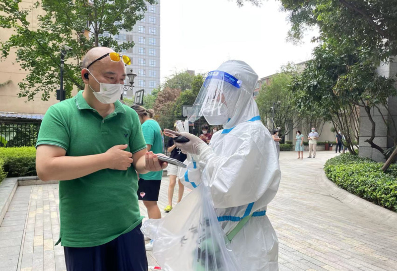 (协会工作人员下沉社区,充当志愿者进行核酸扫码服务)