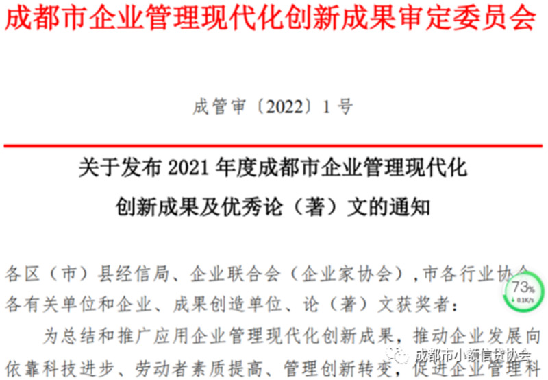 ■兴成小贷荣获2021年度成都市企业管理现代化创新成果优秀论文三等奖