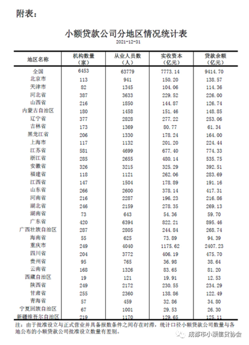 ■ 中国人民银行发布2021年小额贷款公司统计数据报告