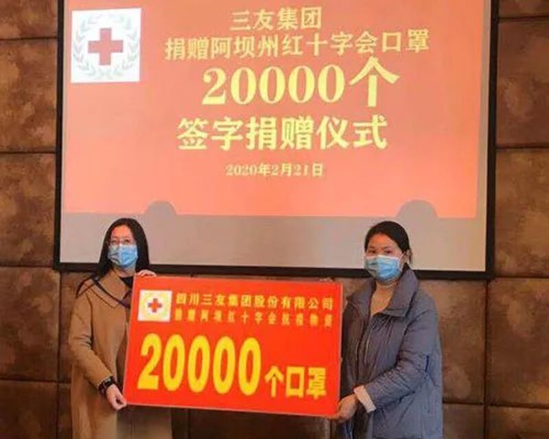 为共同抗击“新冠肺炎”疫情,践行“建阿合作”民建企业担当,2020年2月21日,四川大蜀青羊小额贷款有限公司集团公司——四川三友集团心系阿坝州“新冠肺炎”疫情捐赠仪式在四川省阿坝藏族羌族自治州顺利举行。捐赠仪式上,集团总助马莉嘉代表集团郝士权董事长及四川三友集团向阿坝藏族羌族自治州政府捐赠2万个口罩,以解阿坝藏族羌族自治州疫情防控燃眉之急。