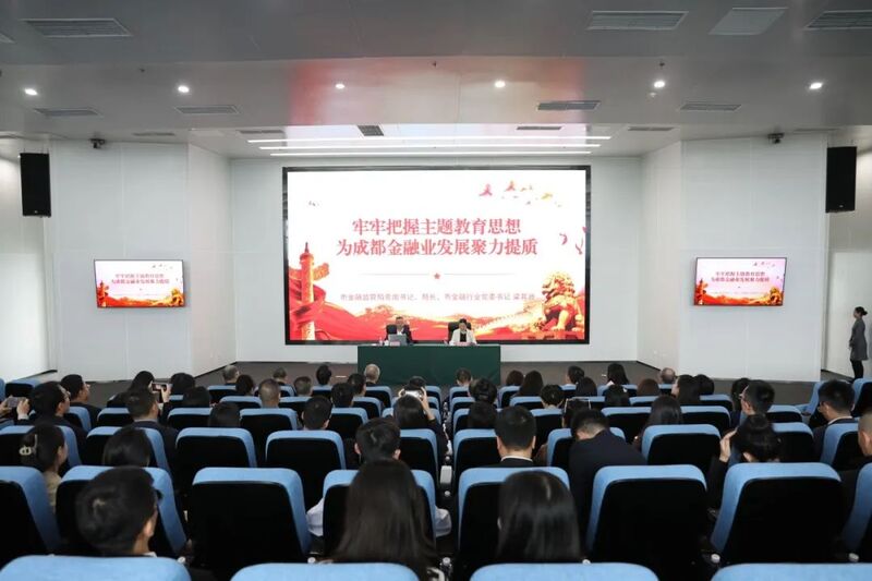 在金融麦田报告厅,市金融监管局党组书记、局长,市金融行业党委书记梁其洲同志以“牢牢把握主题教育思想 为成都金融业发展聚力提质”为题为全体党员代表进行了党课授课。