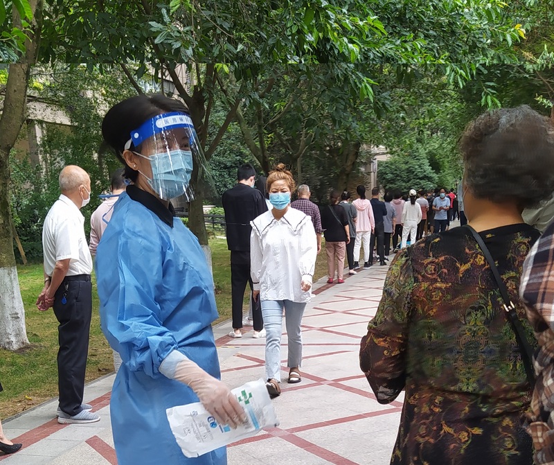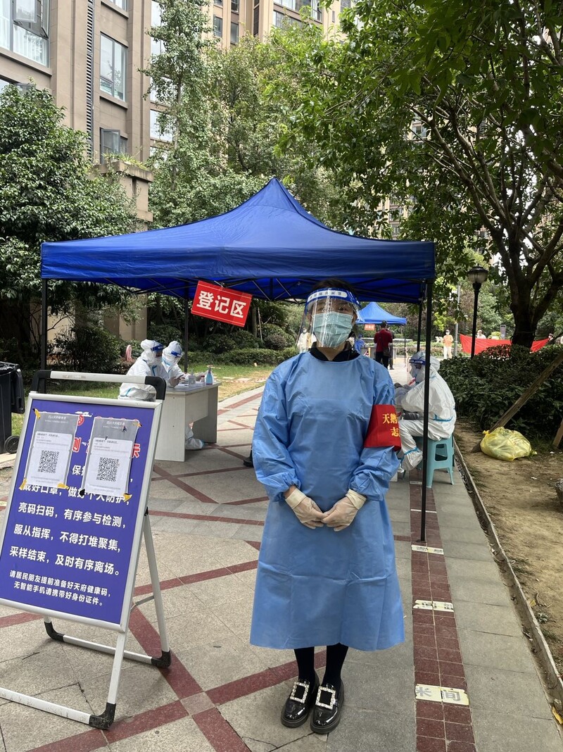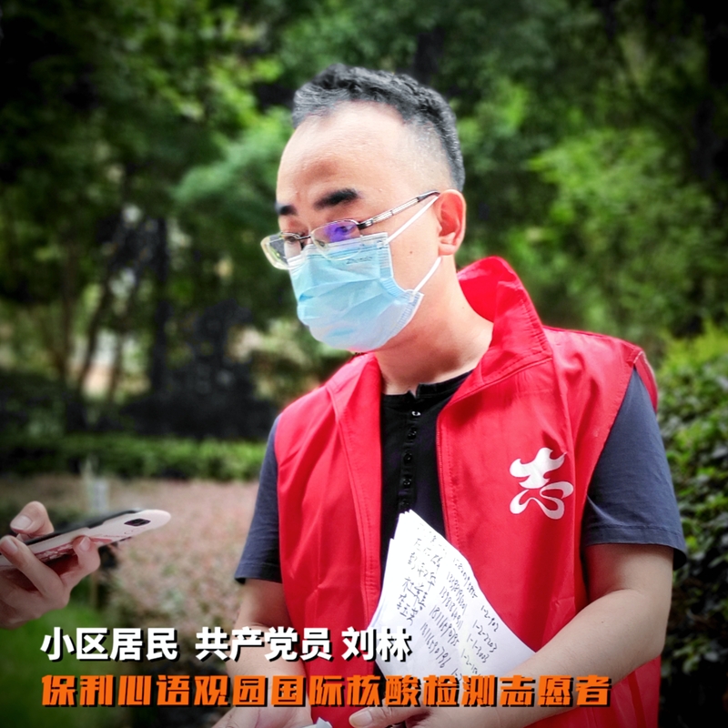 “我是党员,申请在小区做志愿者,有什么我可以做的吗?”9月1日,家住保利观园国际的党员干部刘林,主动亮剑,下沉社区,转换为社区志愿者,投身小区里的抗疫工作。他的妻子是一名医生,在抗击疫情的前线早出晚归,他也第一时间报名。在此次疫情中,他的志愿工作主要是在小区对来参加核酸检测的居民进行秩序维护,保持队列的有序性,帮助老人对做核酸流程的了解,提醒大家打开健康码等等,每轮核酸他都是最晚的一批结束服务的志愿者。