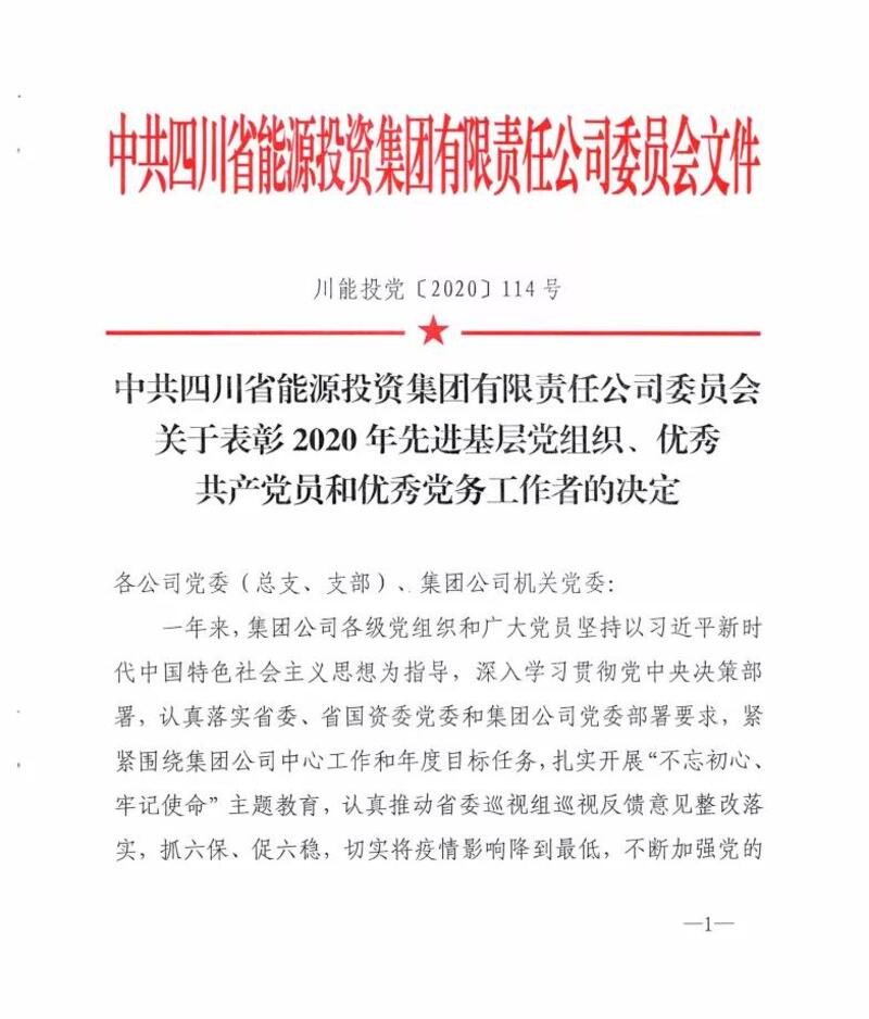 ■ 成都金坤党支部喜获2020年能投集团“先进基层党组织”荣誉称号