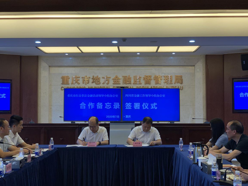 7月2日,四川省金融工作领导小组办公室与重庆市打击非法金融活动领导小组办公室负责同志在重庆市召开川渝地区防非处非合作座谈会,并签署《深化打击非法金融活动协调联动机制助力成渝地区双城经济圈合作备忘录》。