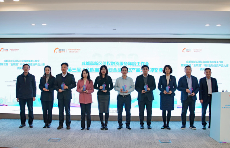 12月22日,2023年成都高新区债权融资服务年度工作会暨第三届“金熊猫”科创金融信贷产品大赛颁奖典礼在高新区科技金融大厦举办,高科科贷公司作为唯一一家非银行获奖机构受邀出席本次大会。