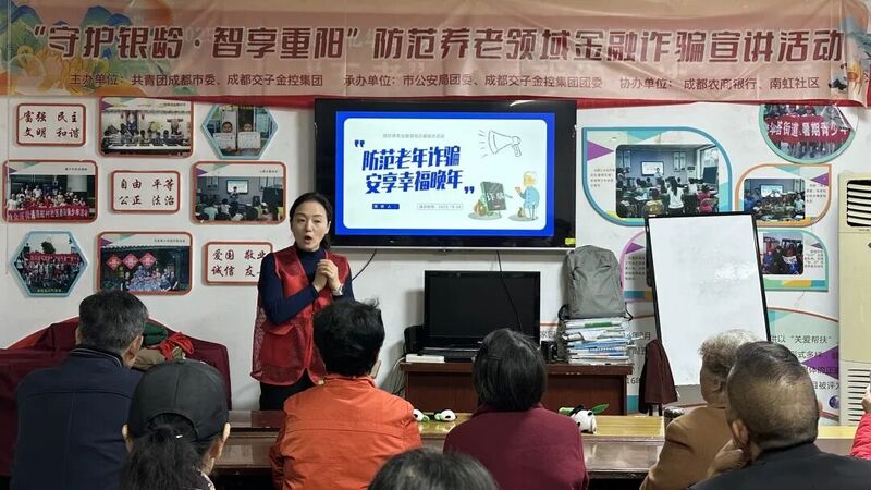 重阳节前夕,金控小贷公司党支部积极响应国家加强老年人权益保护、防范金融风险的部署,以“我为群众办实事”为抓手,聚焦城乡老年群体金融安全需求,组织党员志愿者深入跳伞塔街道南虹社区、都江堰书院社区,开展“警惕金融陷阱,守护老人‘养老钱’”宣传活动,以国企担当践行民生使命。